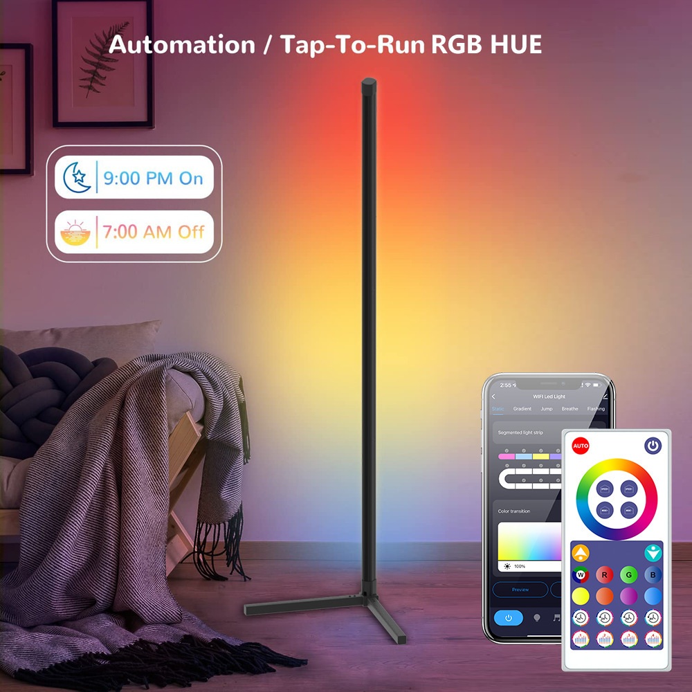 XRTECNA Music Smart Wireless App Controlled Modern Atmosphere Light Tripod Corner Standing RGB LED Floor Lamp